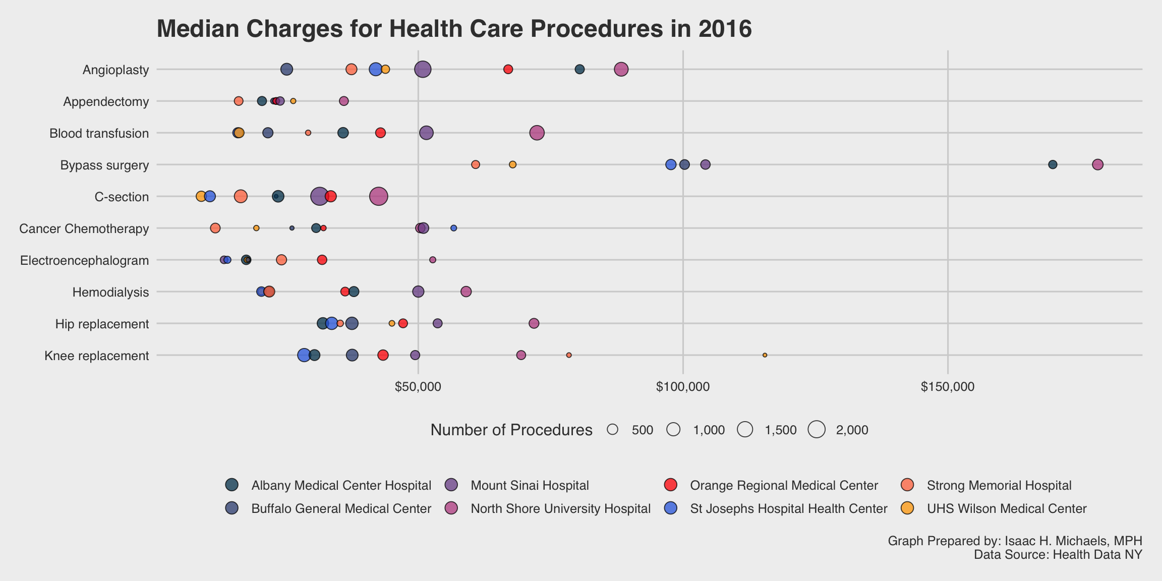 Article 28 hospital facilities with the highest number of inpatient discharges in each of eight Health Service Areas in New York State during 2016 were selected for the above graph.